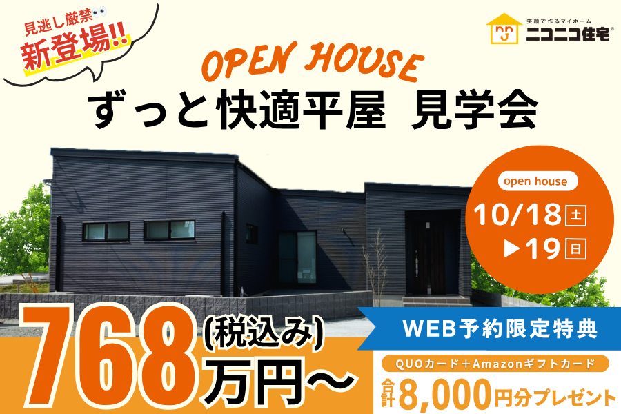 実際に体感してみよう✨10月・11月特に地震の多い九州地方では、圧倒的人気を誇る平屋! \ だからこそ!/ニコニコ住宅の平屋は、低価格×高品質を実現! マイホームをご検討中の方には実際に見て👀体感していただきたい価格以上の快適な住まいです✨ お住いのエリア以外の平屋もご案内できますのでお出かけのついでやお時間のある時にぜひご見学くださいね😊💛 こんな方にオススメのイベントです! 久留米店で家づ…